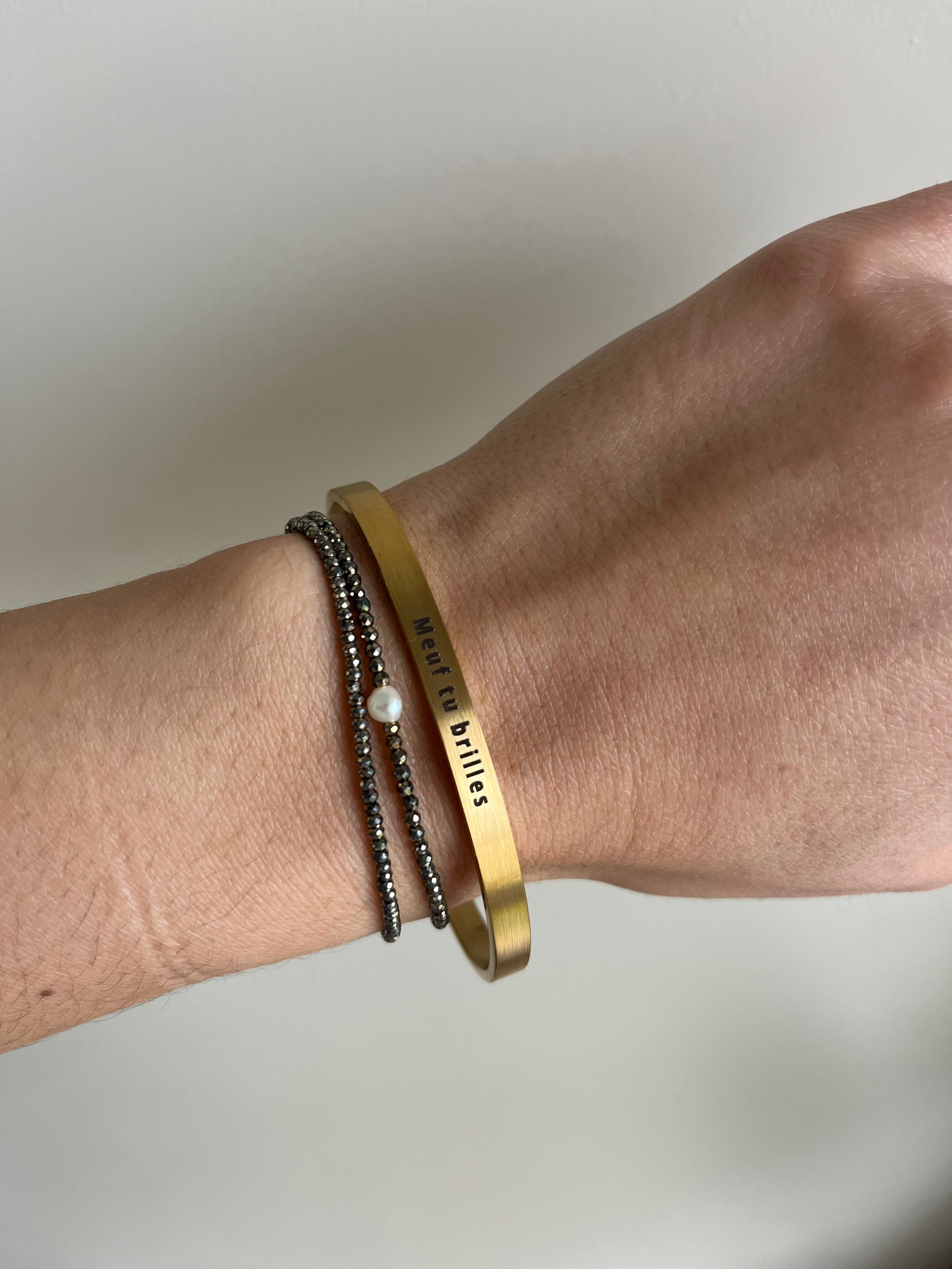 Le Jonc Meuf Tu Brilles te rappelle chaque jour que tu es forte, unique et lumineuse. À porter seul ou en accumulation, il fait briller ton poignet avec style et assurance.