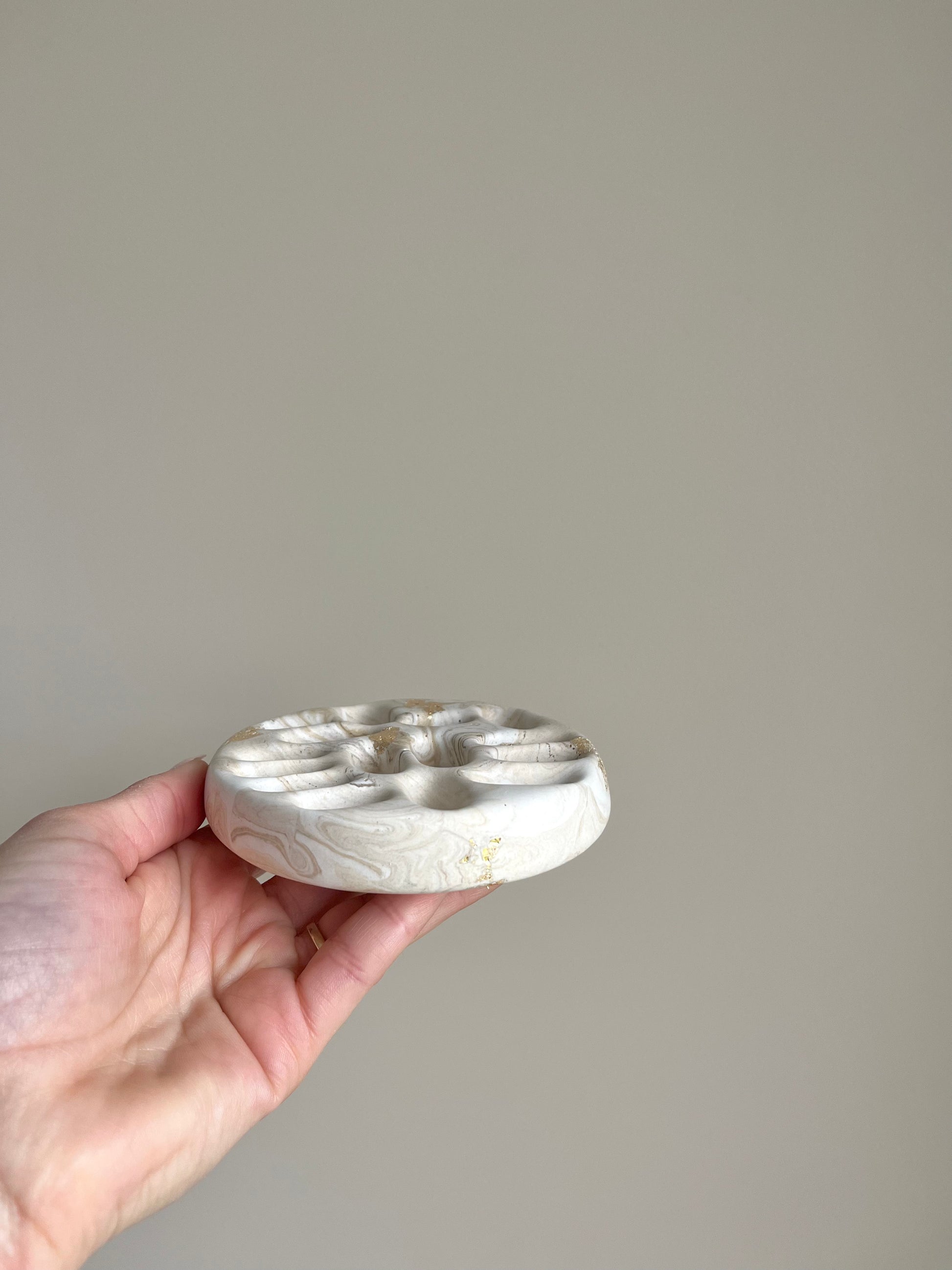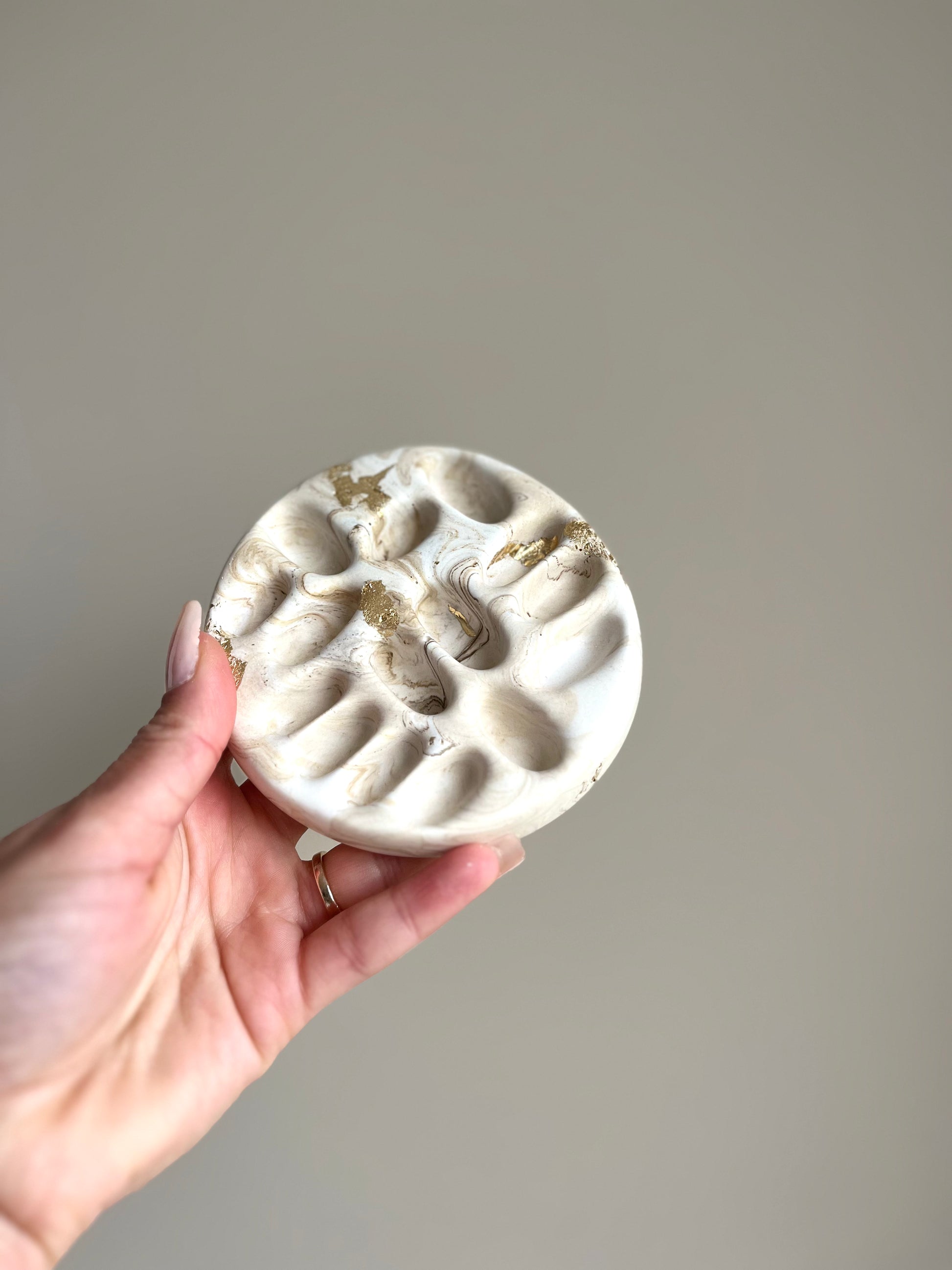Plateau porte-bagues Moka en Jesmonite – Feuilles d’or – You Gold This