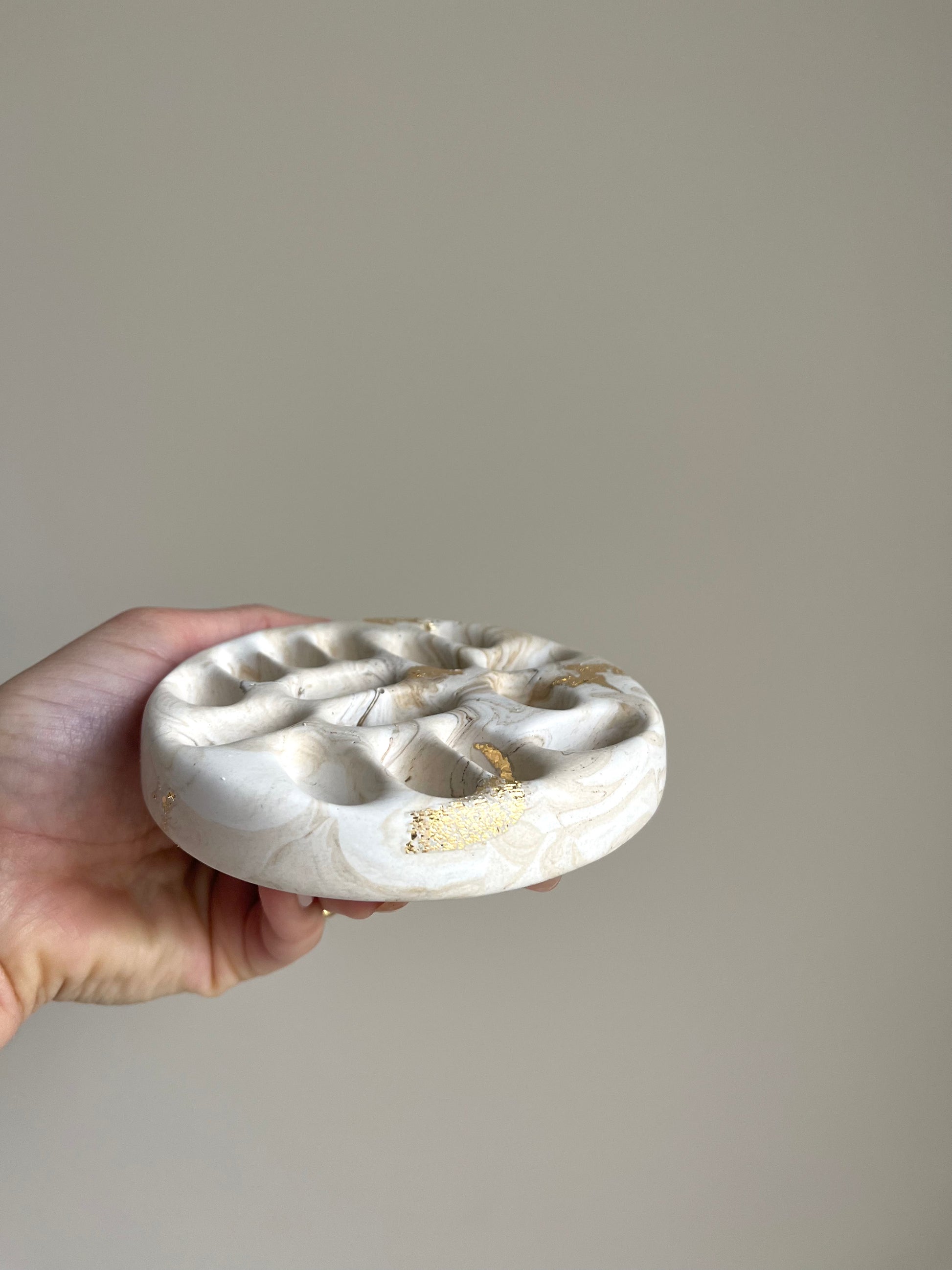 Matériau : Jesmonite moulé à la main, feuilles d’or