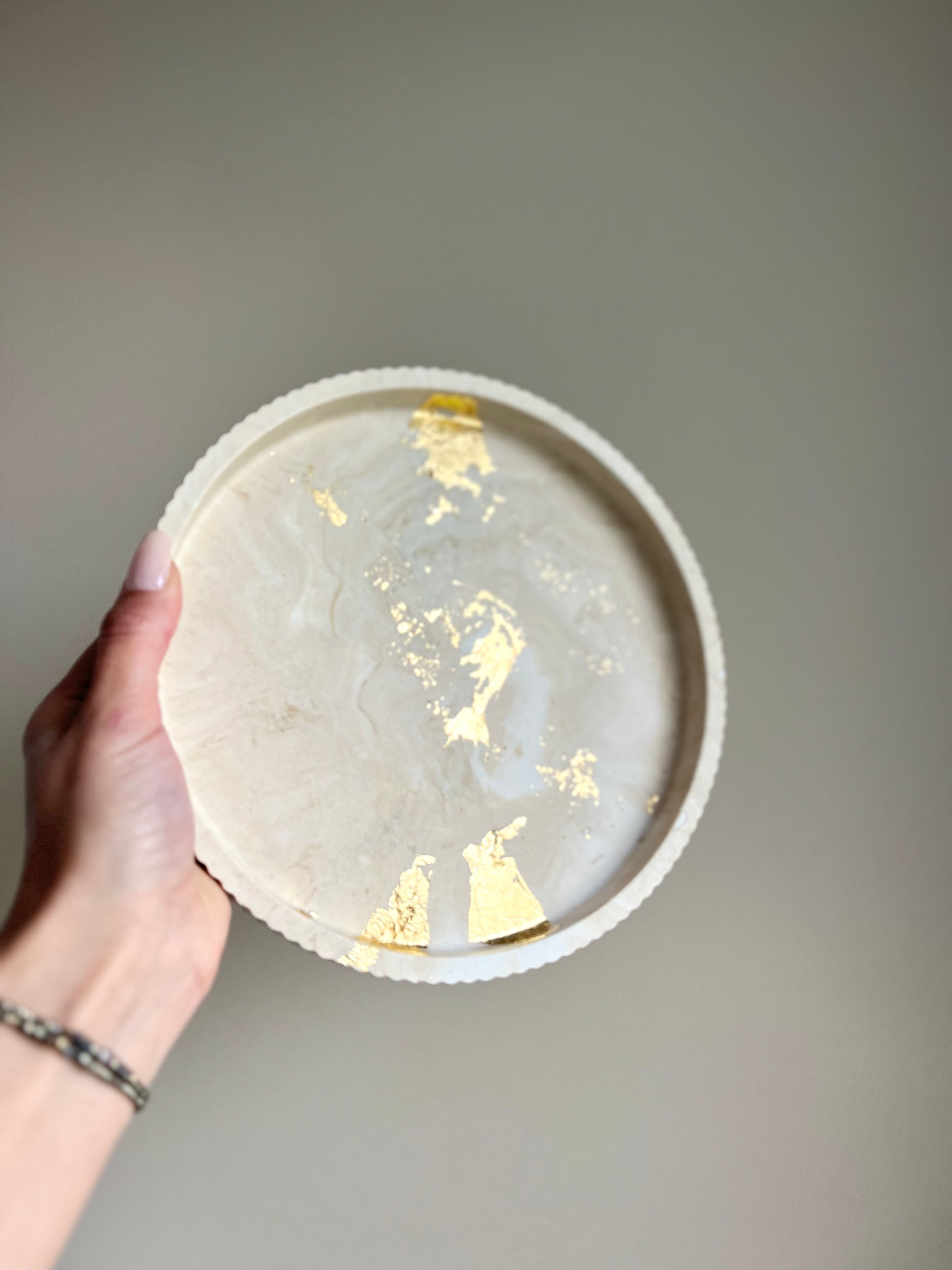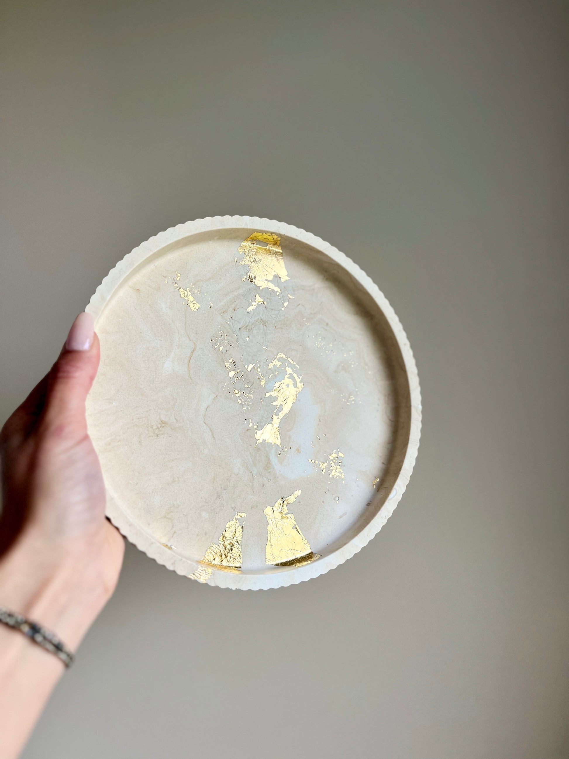 Grand plateau ondulé décoratif moka – Jesmonite et feuille d’or – Plateau fait main – You Gold This