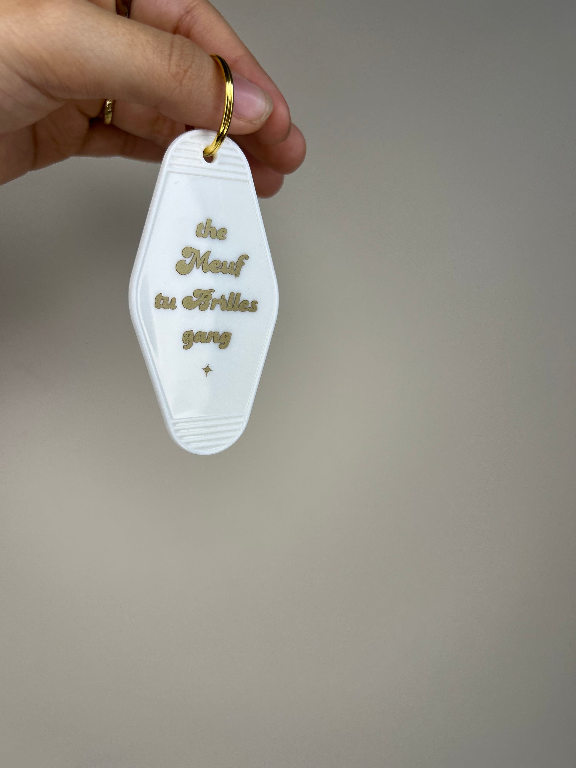 Porte-clés hôtel blanc « Meuf tu brilles » – Anneau doré, design rétro chic You Gold This (Copie)